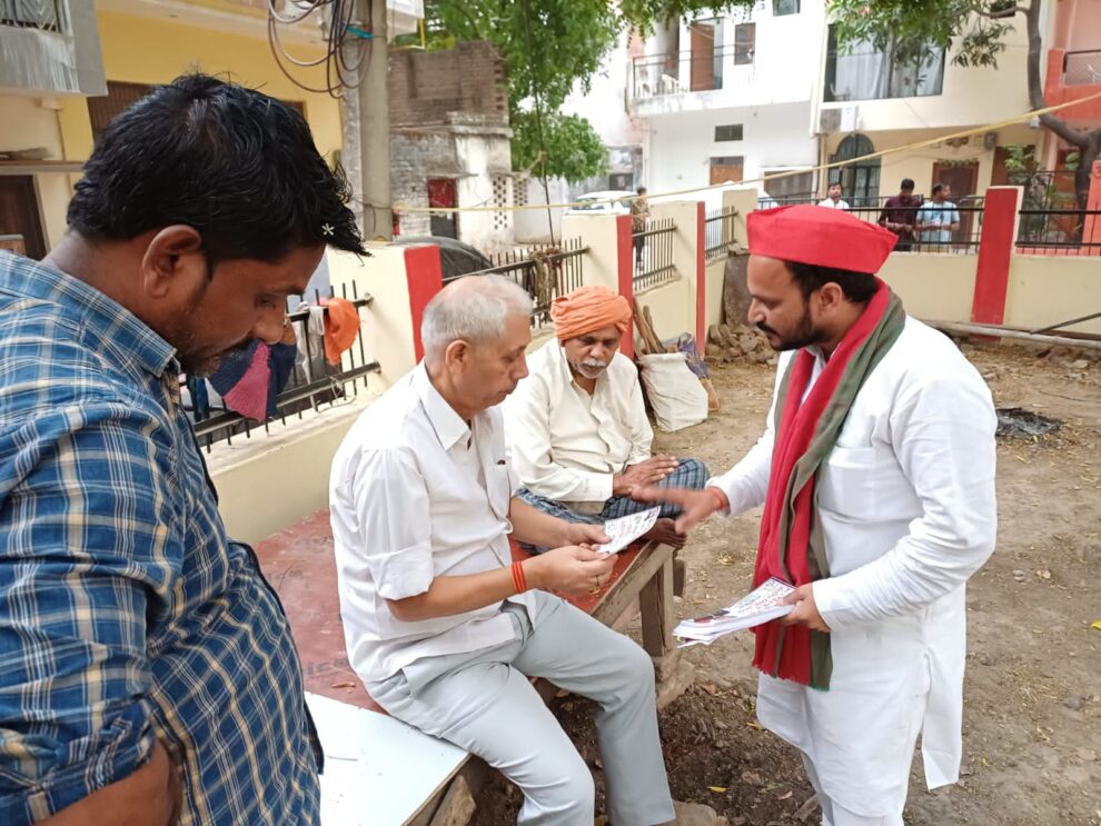 वार्ड 75 से सपा प्रत्याशी संदीप सिंह सत्या भी लोगों से मिल रहे