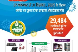 -समय पर कोरोना टीका की दूसरी डोज लेने वालों को दिया गया पुरस्कार -टीका की दूसरी डोज समय पर लेने पर आप भी जीत सकते हैं पुरस्कार बांका, 17 दिसंबर । जिले में...