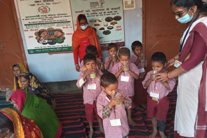 – डीपीओ के नेतृत्व में ऑंगनबाड़ी सेविका द्वारा खुद से तैयार सूप का बच्चों के बीच किया गया वितरण – केंद्र परिसर के ही पोषण वाटिका में लगी...