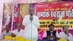 इस दौरान राष्ट्रीय उपाध्यक्ष राजू बाबू सिंह जी पूर्व डी.आई.जी. ने कहॉ कि सम्यक स्वराज पार्टी पहले से ही आंतरिक लोकतांत्रिक संगठन की शुरुआत करने और लोकतांत्रिक पार्टी के विमर्श को पूरे देश में एक मूलभूत मुद्दा बनाने वाली देश की एक मात्र शोषित समाज की पहली पार्टी हैं जिसमें प्रत्येक पद का कार्यकाल 2 वर्ष का है और कोई भी व्यक्ति दो कार्यकाल से ज्यादा अध्यक्ष, संगठन सचिव और कोषाध्यक्ष नहीं रहेंगे और यह भी लगातार दोहराए नहीं जाएंगे। यह पार्टी व्यक्तिवाद, परिवारवाद, जातिवाद, वंशवाद, क्षेत्रवाद, धर्मवाद से पूर्णयता मुक्त होगी। इसका संगठन पूर्ण रूप से लोकतांत्रिक होगा, जिसमें प्रतिभाशाली सभी प्रांतों, जाति, धर्म के लोगों को हर स्तर पर नेतृत्व करने का अवसर मिलेगा। आगे उन्होने कहा कि वर्तमान में आम जनता की हालात हर तरह से बद से बदतर हो रही है और दूसरी ओर देश और प्रदेश में सिर्फ व्यर्थ के मुद्दे गढ़े जा रहे हैं। सत्तारूढ़ पार्टी और पूरा तंत्र और टीवी, मीडिया सभी चंद शब्दों तक देश के विमर्श को सीमित कर दिए हैं। ये हिंदू, मुस्लिम ,गाय, आतंकवाद, पाकिस्तान, राष्ट्रवाद जैसे कुछ शब्द हैं, जिनके इर्द-गिर्द रात दिन पूरा विमर्श जारी है, जबकि जनता की जो बुनियादी समस्याएं हैं, जैसे उनकी शिक्षा, रोजगार, घोर गरीबी की, उनके बीमारी की, सामाजिक ताना-बाना टूटने, आपस में देश में मनमुटाव, नफरत और बढ़ती दूरियों, दिन पर दिन बढ़ती मंहगाई, शांति व्यवस्था की समस्या, बढ़ते सामंतवाद और मनुवाद, समाप्त होते आरक्षण, सरकारी संस्थाओं की बिक्री, निजीकरण और देश में चंद अनैतिक पूंजीपतियों को आगे बढ़ाने, जैसे तमाम जरूरी और बुनियादी मुद्दों पर कोई भी विमर्श नहीं होता है।